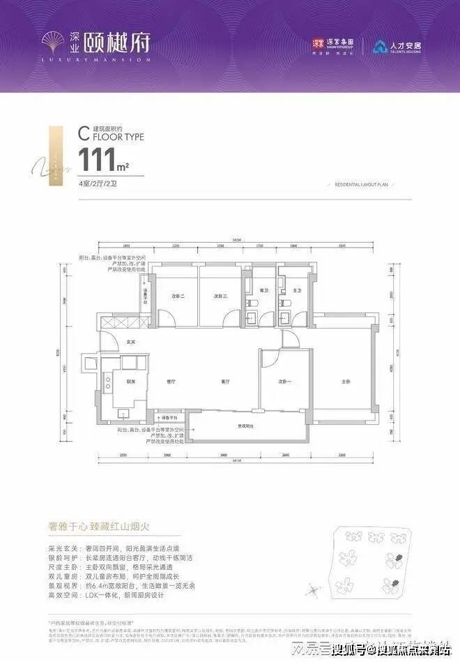 深业颐樾府二期《颐璟台》户型:深业颐樾府售楼处电话☎:400-150-5057建面约99-116㎡3-4房,品质雅宅!户型方正实用,户户朝南,舒适采光!宽景阳台揽胜云端,奢阔景观面!