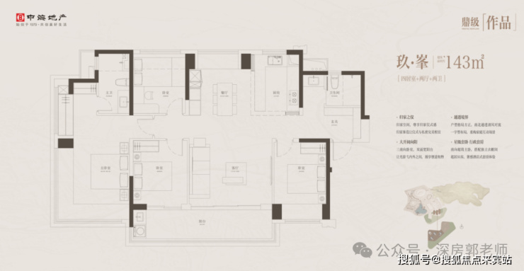 139㎡拥有超大双面采光大方厅,可享西南向山景和东南向大运中心双面景观,户型算是3+1房,可以改造为4房,喜欢全通透大客厅的可选。