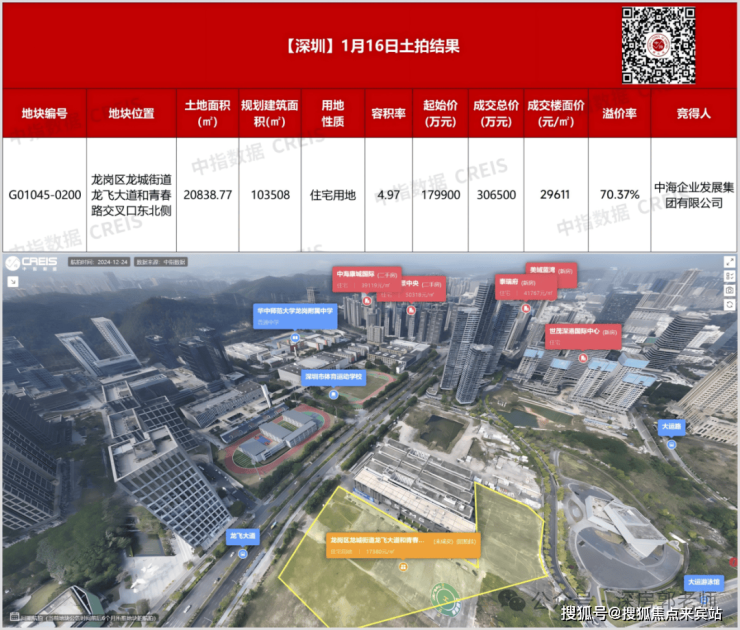 该地块原是在2025年1月16日深圳第一轮集中土拍中,由中海集团竞得的G01045-0200宗地,成交价30.65亿元,楼面价达到了2.96万/㎡。