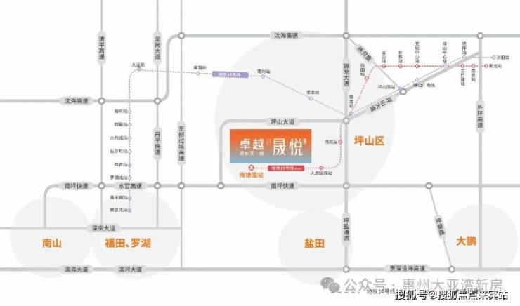 交通:南坪快速、东部过境高速(在建中)、坪盐通道,3条快速速抵罗湖福田,约15km盐田沙头角、约25km罗湖莲塘/香港、约35km福田、约40km南山