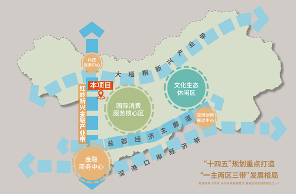 红岭新兴金融产业带是罗湖不可或缺的金融主脉,聚集罗湖80%持牌金融机构,辖区金融机构总部及分支机构超70家,全市排名第二,与前海金融城、香蜜湖金融街共同成为未来深圳三大金融增长极。