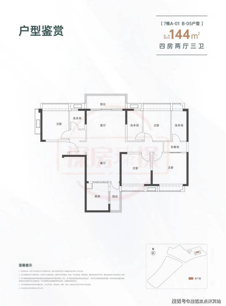 144㎡的4房2厅3卫,设计的是竖厅南北通透格局,双阳台,进门入户玄关,客厅3.8米开间,LDKB一体化设计,双主卧套房,4个卧室分别做到了主卧16.01㎡/次卧11.16㎡/次卧10.46㎡/次卧9.45㎡(实测面积,去掉墙体),L型厨房还带1个生活阳台,公卫干湿分离,得房率约82%(不含赠送),阳台主朝西北向。
