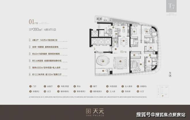 【T7-01户型鉴赏】约393㎡四房三厅六卫