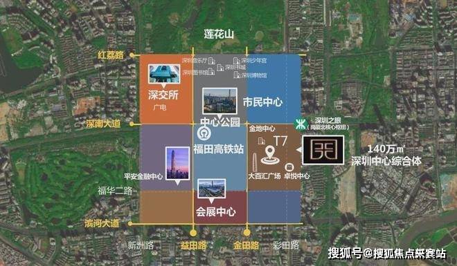 还有岗厦北交通枢纽(在建)、福田与皇岗双口岸,以及8条地铁线、近50个公交站点等。