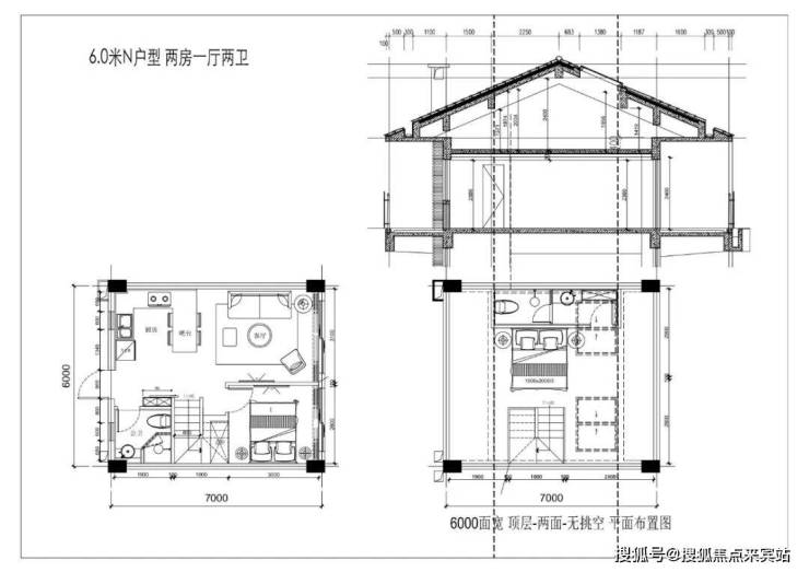 建面65和75,四层双折坡,实得81㎡—99㎡,2-3房2卫
