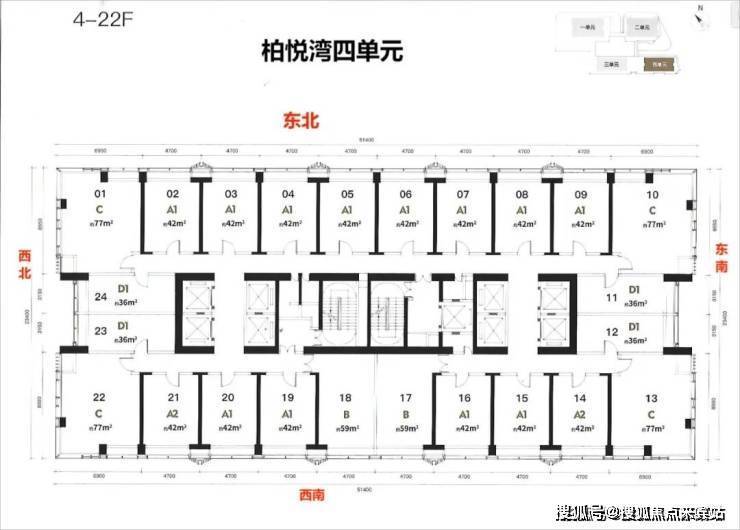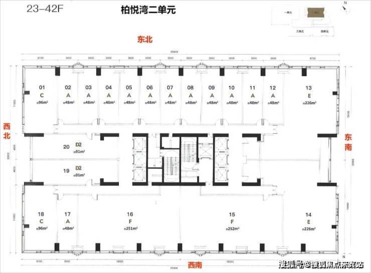 楼层高:1单元5-40层-2单4-43层元商办43层,3-4单元4-48层