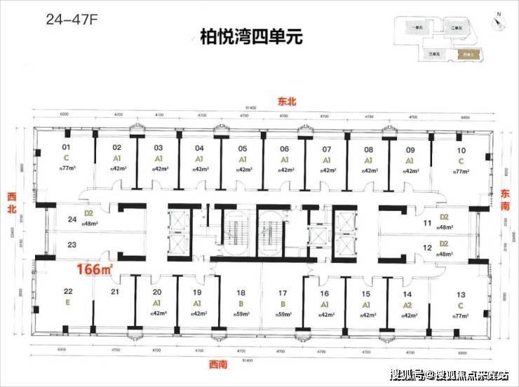 梯户比:公寓5梯24户 商办6梯20户