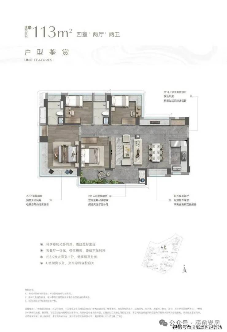 113㎡的4房2厅2卫:户型分布于5/6栋,南向,竖厅户型看山景。