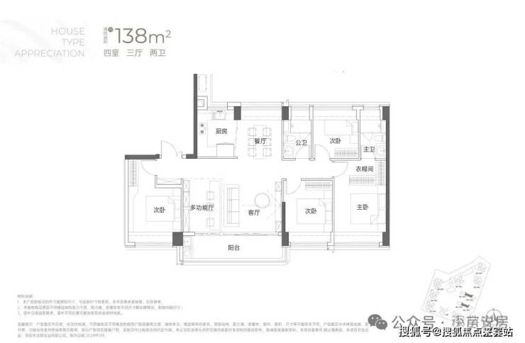 项目整体面积段为95-110-115-138㎡的3-4房。