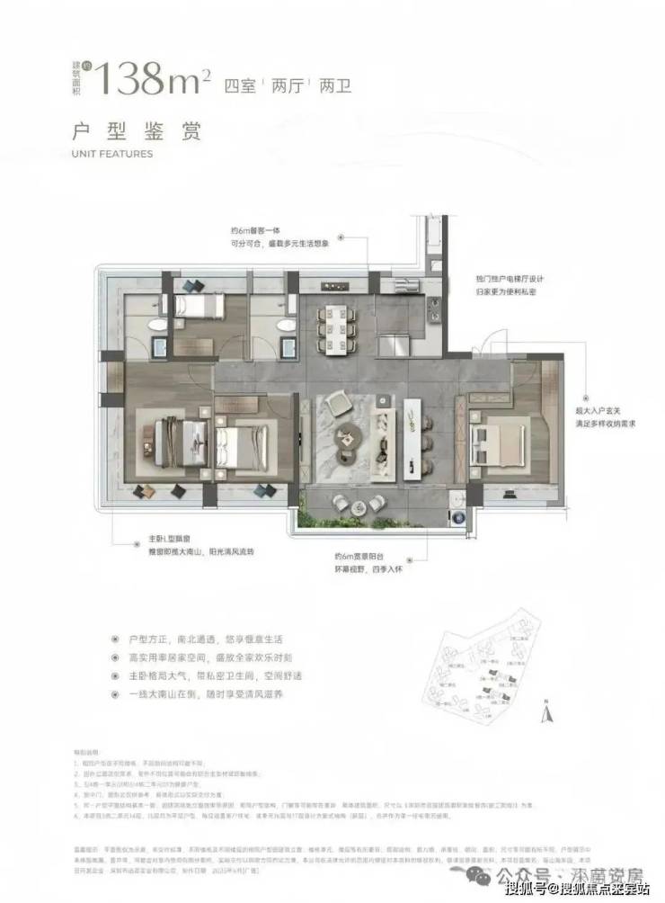 138㎡的4+1房2厅2卫:户型分布于3/4栋,南向板楼,独立电梯厅,小高层,有中间户和端头户区别,端头户多整面凸窗赠送,核心区非常罕见的优质产品,跟2015年入市的前海时代CEO公馆有点接近。