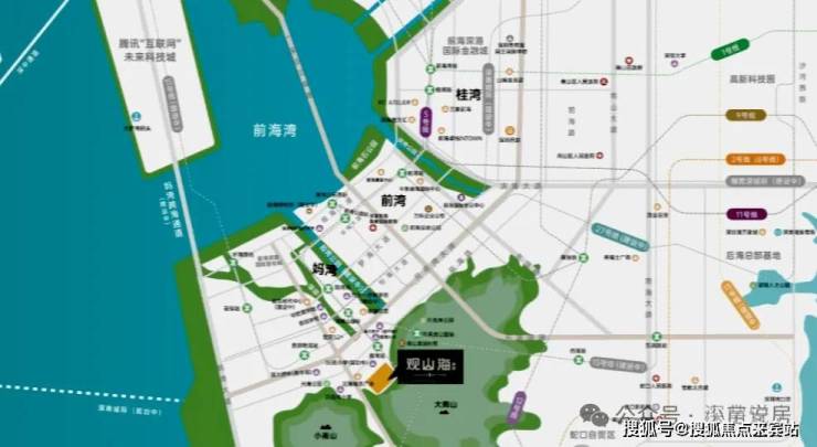 在区位上,项目毗邻大南山,属于南山中心区荔湾板块,靠近前海妈湾片区和蛇口片区;附近有妈湾在售的万科瑧湾悦价格在10.5万,以及即将入市新盘有妈湾的前海招商臻玺预计在10万左右,项目这两个项目观山海花园并不在妈湾核心位置,属于比较边缘地界了,后面入市大概率价格方便也会稍微比较低一些,项目相比于这两个小区优势在于景观背山面海以及大社区花园。