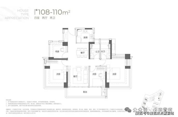 115㎡的4房2厅2卫:户型分布于1/2栋,东南、西南朝向,横厅户型但是能做到南北通,赠送率最高的户型,2栋1单元户型差异这在阳台位置的设置上。