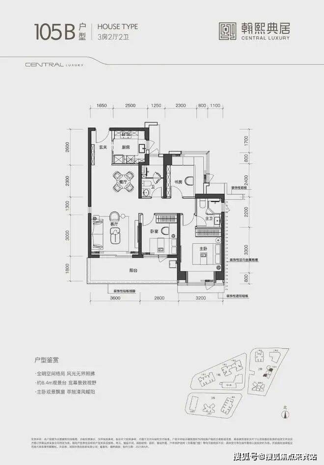 105㎡B户型:位于三单元02、06梯腿,3房2卫、竖厅格局,06梯腿朝小区内部,02梯腿朝东,相对来说是这一次性价比最高的户型。