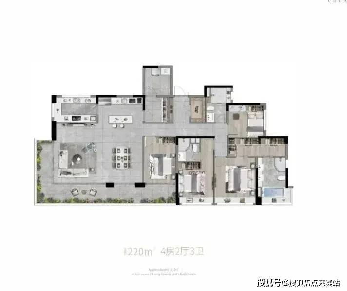 项目在售的户型,从建面约120㎡的三房,到建面约220㎡的奢阔五房,都能随心挑选。