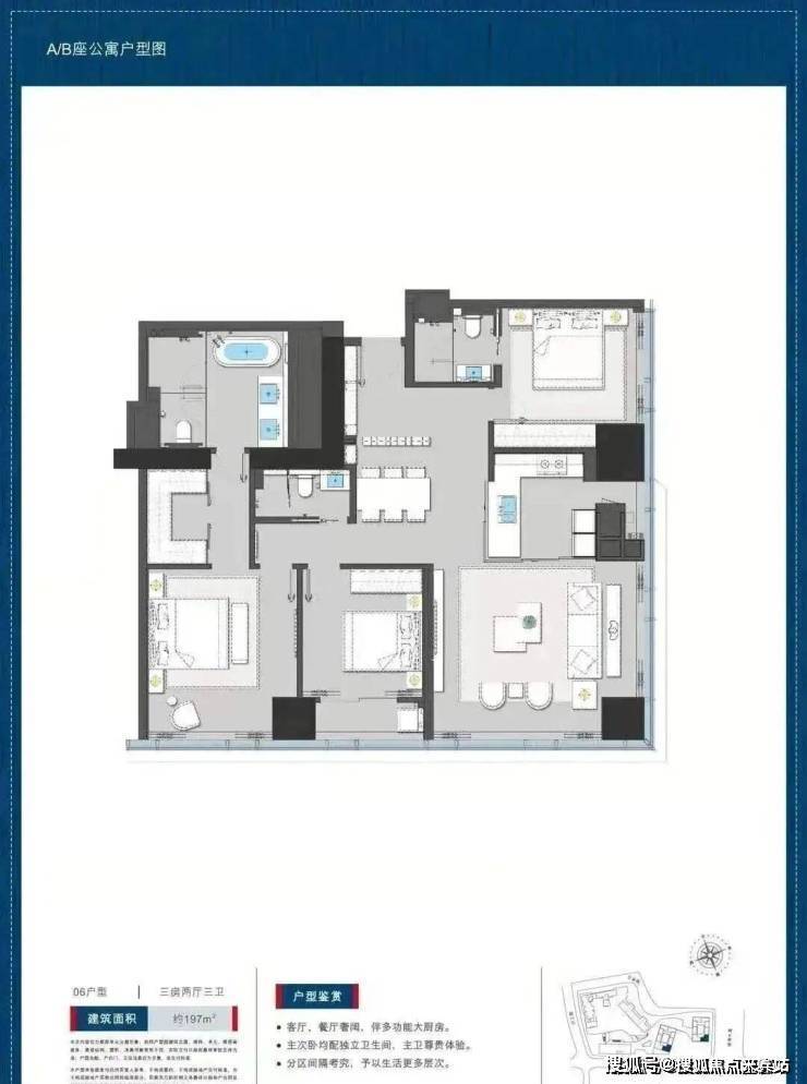 公寓197平户型三房两卫: