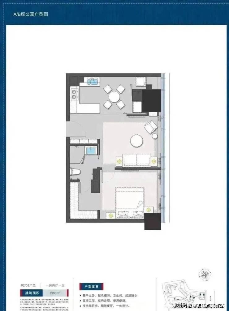 公寓90平户型一房一卫: