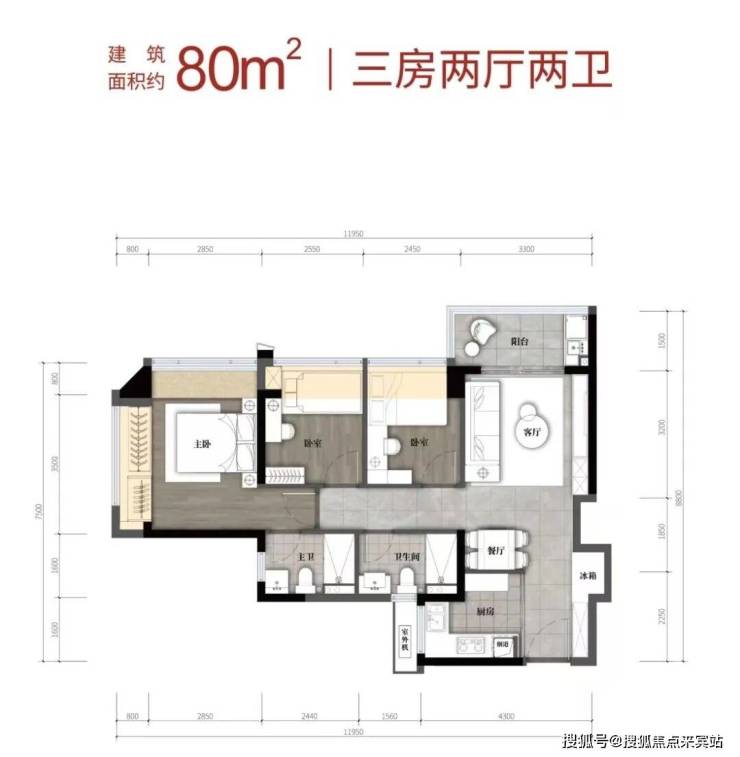 其中,项目 最小的户型 为 建面约 80 ㎡ 的三房,且可以做到 三房 两厅 两卫,比市面上同面积段户型多出一个卫生间, 虽整体面积不大,但业主生活已不需要再做将就。