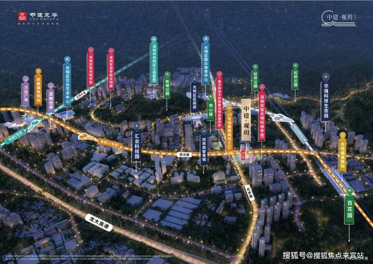 城市活力十足,城市价值显著增强,光明区自然也是深圳近年来显著崛起的置业热门区域,特别是中建观玥项目所在的 “凤凰城”板块,根据光明区的“ 十四五 ”规划,凤凰城板块定位为光明科技总部基地,科创融合先锋商务区,并提出围绕光明城站建设枢纽型交通强区,造就下一个“深圳北站”。