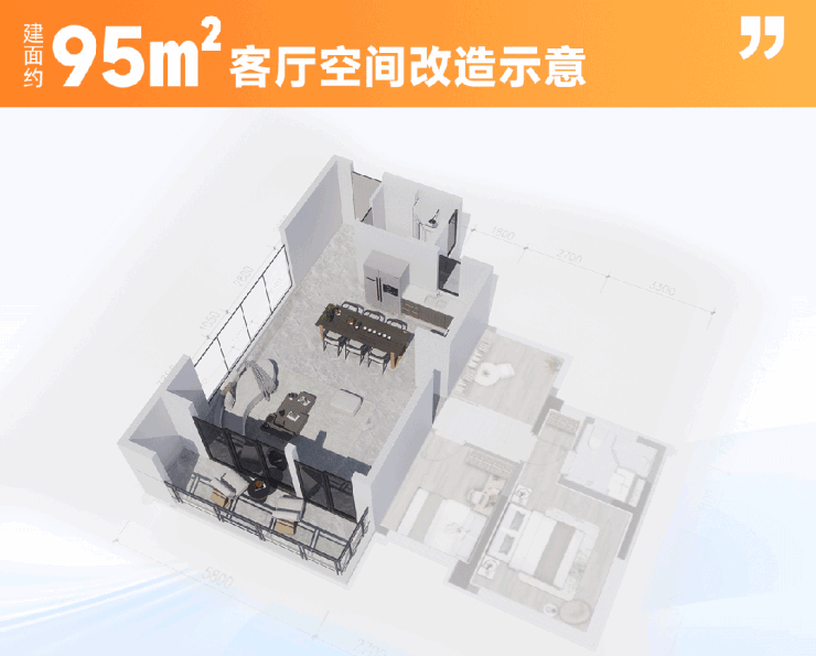 传统约95平户型,阳台尺度最多做到4米。但项目约95平户型,将阳台尺度拉升到约5.8米!