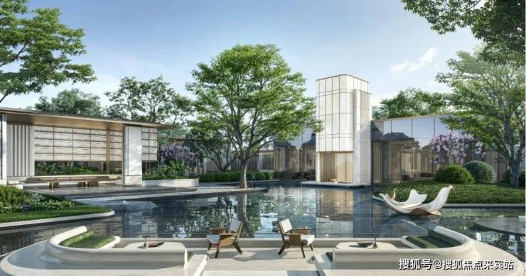 项目更结合城市中轴岛居的气质,以希腊安缦「精神属性与岛居度假美学」为灵感,打造六重园林生活场景,在社区中带来度假酒店的松弛感。