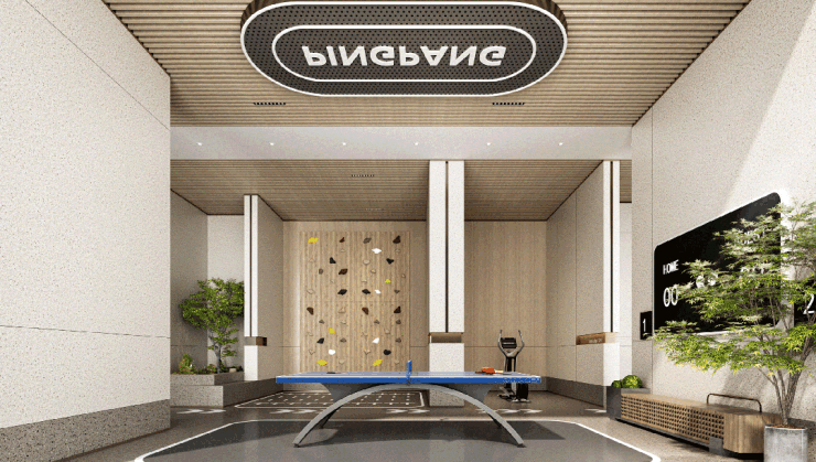 项目的架空层空间通过引入独特景观资源,消融社区与楼栋的边界感,又结合不同功能设置,打造“全龄会客厅”概念。