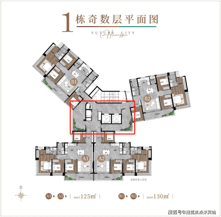 2)项目主打建面约125-169㎡全改善户型,其中约169㎡是板楼户型。
