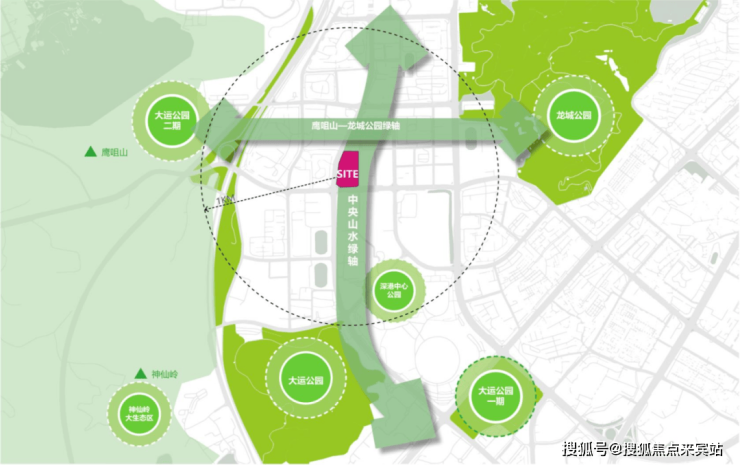 城建配套方面:邻近建面超29万㎡大运中心体育馆;直线距离约1km内大运公园、龙城公园环绕;直线距离约3.5km内龙岗区中医院、龙城医院、龙岗区妇幼保健院、龙岗区人民医院。