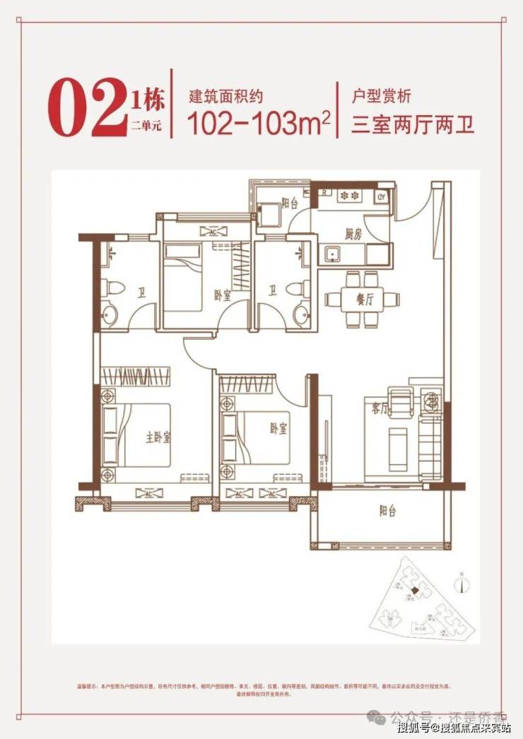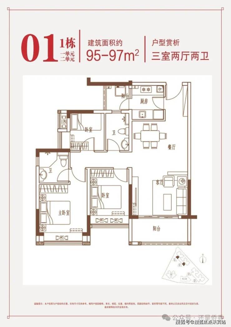 ✅约95/97/103㎡三房两厅两卫 (95-97㎡36套 103㎡18套) (3-20层)西南向 总价约:416-494万
