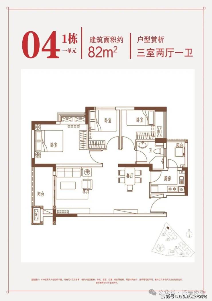 ✅约82㎡三房两厅一卫(51套)(3-19层)东南/西北向 总价约:333-379万