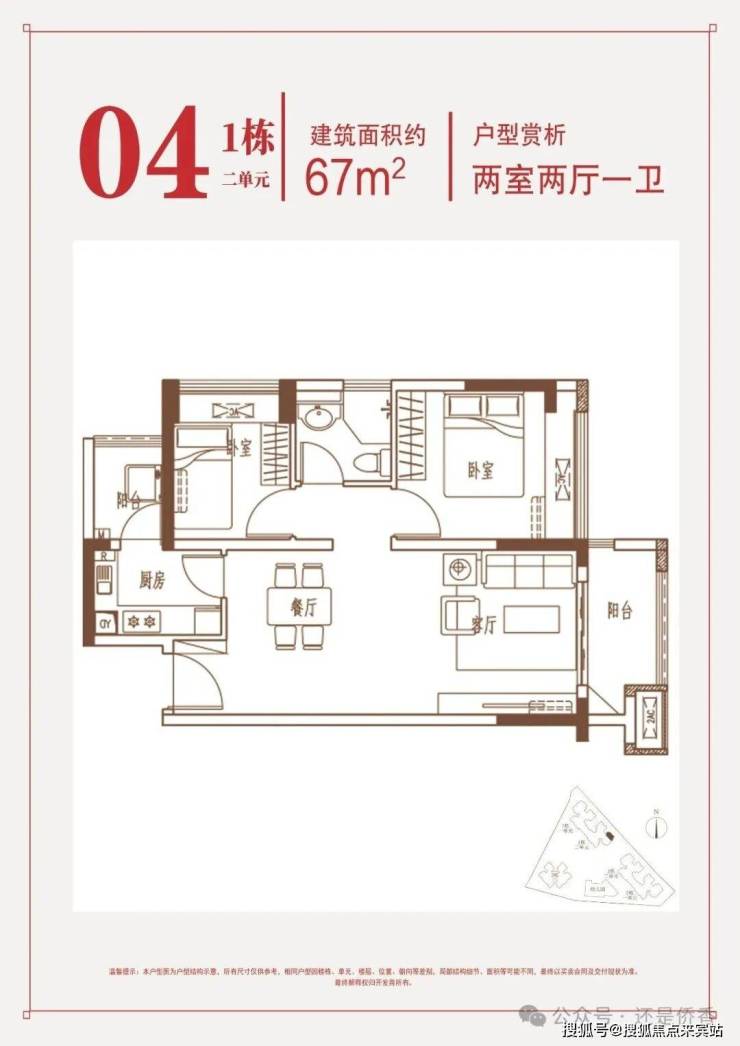 ✅约67㎡两房两厅一卫(18套) (3-19层)东南向 总价约:287-309万
