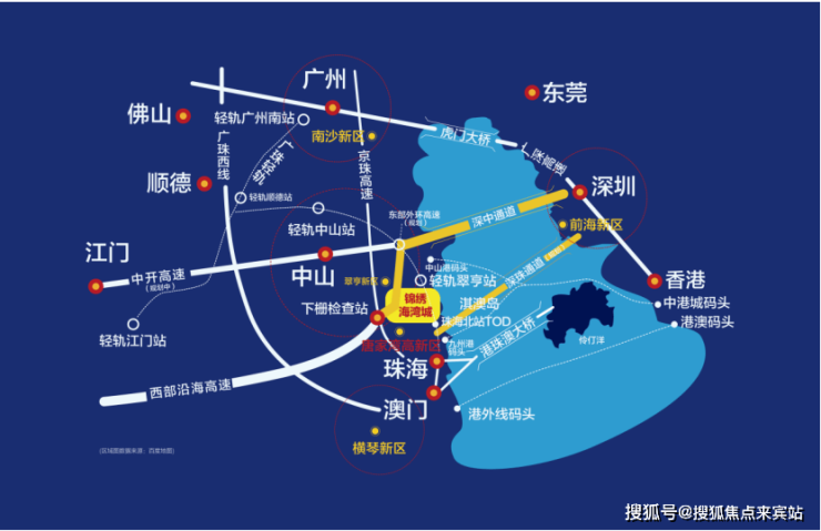 项目坐落千亿翠亨新区,享深中/深珠通道(规划中)双重利好。项目距离规划中的深珠通道距离约1.5公里,直线距离珠海唐家高新区约500米(百度地图距离),距离广珠城际珠海北站约1.5公里(百度地图距离),出门即快线口、高速口,快速畅达。