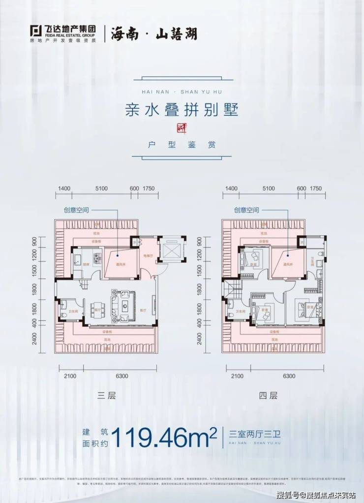 2⃣望湖叠拼别墅🏝建面约119.46㎡五室两厅三卫实得面积约179-220㎡上下双层空间💠6.3米客厅开间💠超大阳台
