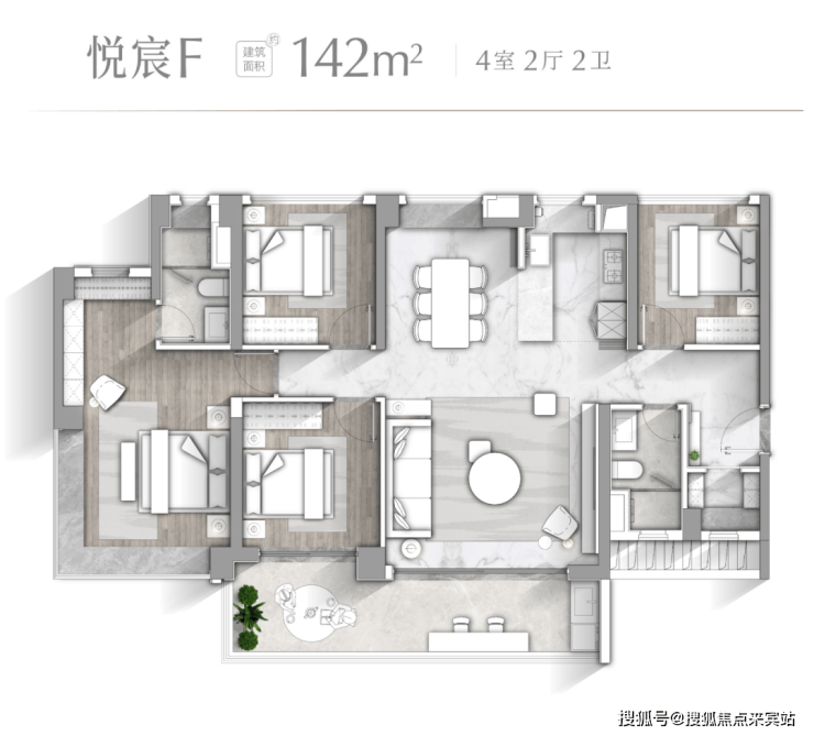 【悦宸F户型 建面约142㎡】