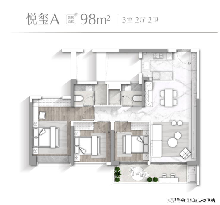 【悦玺A户型 建面约98㎡】