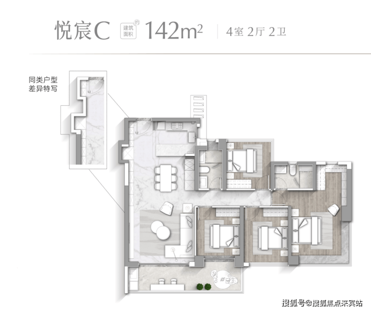 【悦宸C户型 建面约142㎡】