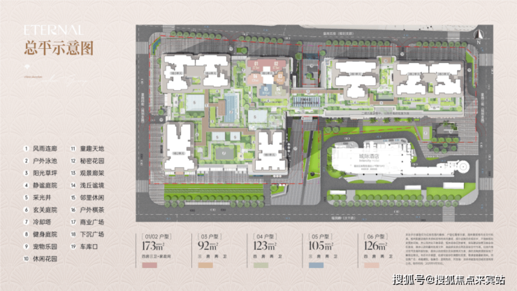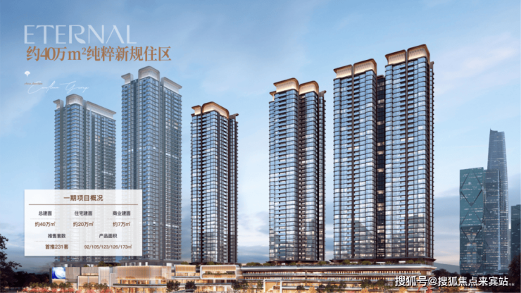 首推入市的住宅产品是「卓越缦悦」西地块(一期)的1-5栋,约232套面积段为约92-105-123-126-173㎡的3-4房,总高45F,5梯6户。