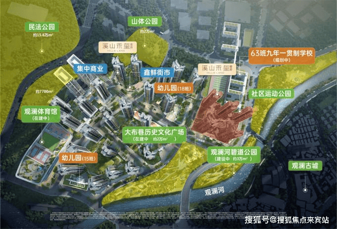 待整体完成后,将涵盖29栋住宅、2栋写字楼、约2万㎡商业配套、2所幼儿园、1所63班九年一贯制学校、文化活动中心、大布巷历史文化广场等。