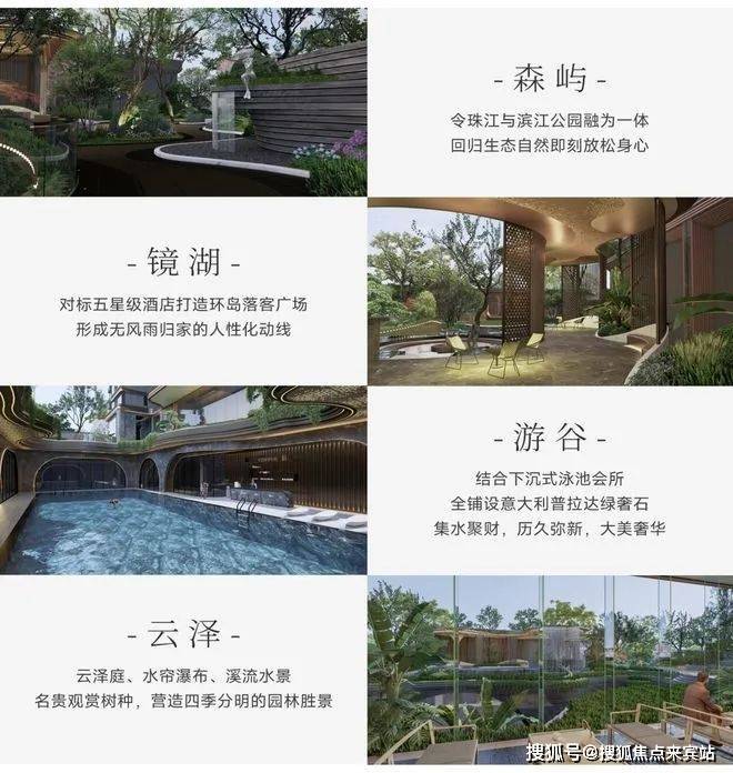 蓝调国际大师主笔,“溯源”广州在地文化,以珠江为源头,溯流而上,从外到内匠心打造:森屿、镜湖、游谷、云泽“四重景观礼序”,塑造优雅归家动线。