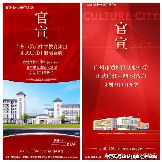 2024年4月30日,中鼎珺合府官宣广州市第六中学教育集团(黄埔军校纪念中学)进驻项目,该学校是广州市第六中学管理和办学的公立学校,现在已经开学。