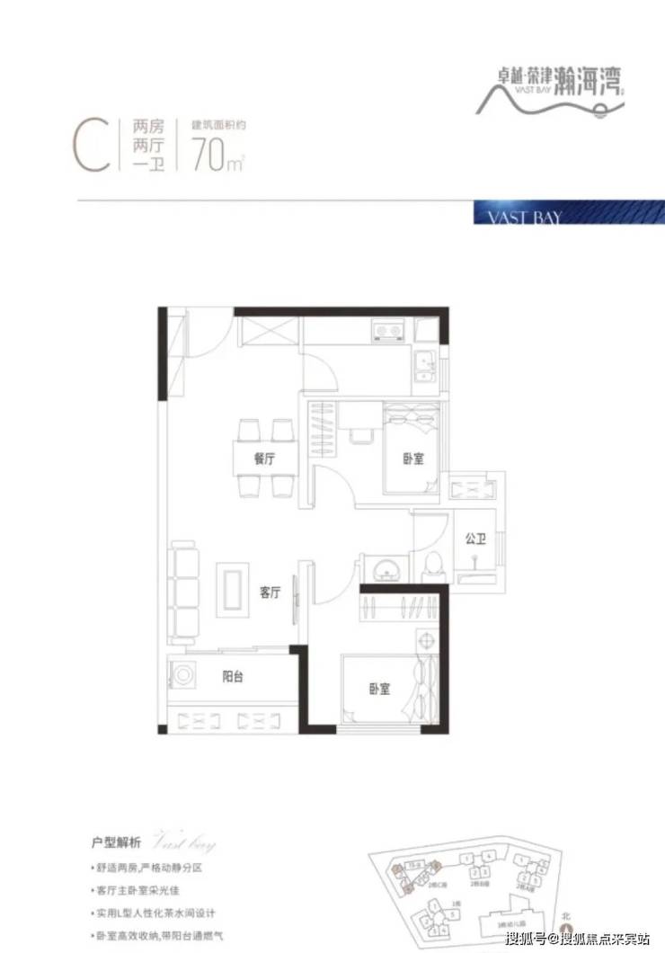 【建面70㎡2居】380万-分布于2栋C座 ,3梯13户,层高2.95米,总楼层33F