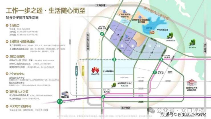 高精尖圈层聚落:毗邻华为总部基地,周边吸引了康冠、神舟等众多知名企业,培育了逾600家高新技术企业。作为全球第三大万亿级电子信息产业集群承载区,这里汇聚了庞大的高素质精英人群,区域发展前景较为广阔。