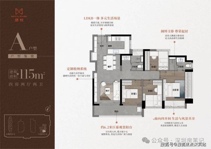 115㎡同样分A/B户型,大阳台设计,主卧带凸窗。但要注意次卧尺度稍微偏小,买之前最好现场看看实体样板间,感受一下实际空间。