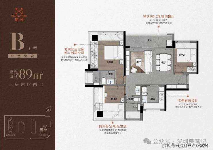 89㎡三房:总价500-530万(72折清盘价,低楼层490万起);