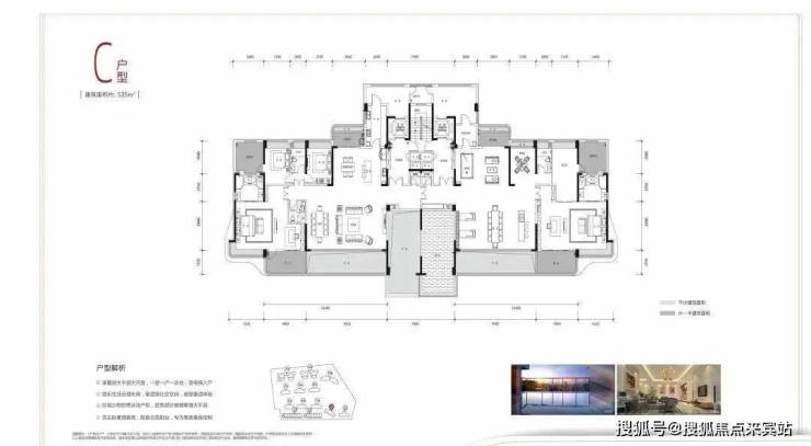 其中,项目在售面积最大为建面约535㎡,5室4厅1厨5卫,两梯一户。这个户型里光阳台就有6个,此外,该户型每套房内还带有单独的室内游泳池。