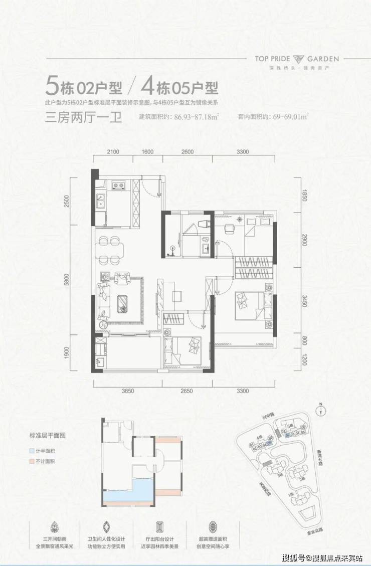 项目户型飘窗、花池全赠送,阳台半赠送,赠送率超高,得房率远超片区竞品,性价比超高!