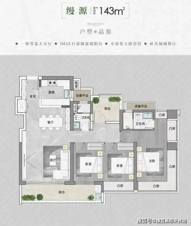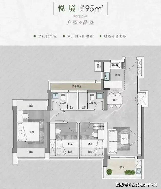 • 得房率:通过创新性的飘窗、双阳台改造、设备平台赠送等设计,实现平均94-96%的惊人得房率。