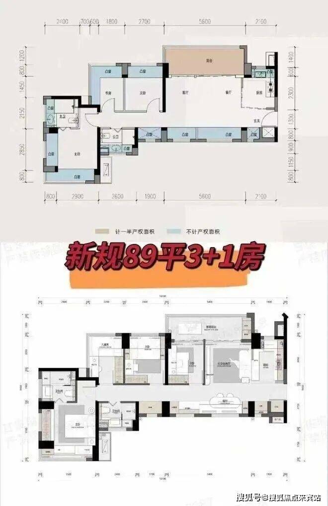 从具体的户型设计来看,居所几乎被飘窗+阳台环绕,据悉赠送率最高可达27%。当飘窗进深拓宽至80cm,阳台面积扩大。